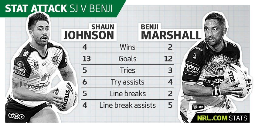 Shaun Johnson will be up against his childhood idol, Benji Marshall, and the apprentice has the edge over the master in head-to-head clashes.
