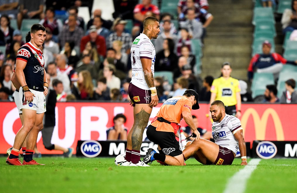 Walker sustained a hyper-extended knee late in the Roosters' 22-20 defeat of a gutsy Manly outfit, staying down after a three-man tackle in which Tricolours winger Joey Manu dived and made contact with Walker's legs while teammates Luke Keary and Victor Radley held him up.