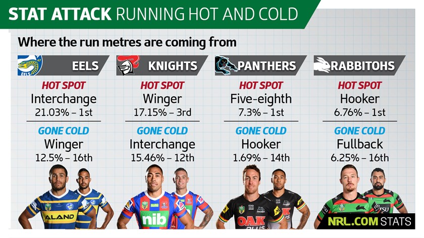 Penrith are ahead of that figure at 7.3% - that number may be slightly increased for the Panthers given Tyrone Peachey's move to five-eighth once Nathan Cleary got injured but it is exactly what the Panthers needed to allow James Maloney to control the side. Melbourne, on the back of Cameron Munster, were next best. The Warriors (2.47%) and Titans (2.87%) are at the bottom of these standings.