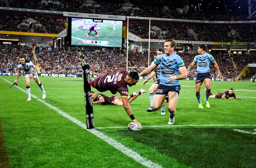 3rd minute: A deft kick from Maroons halfback Daly Cherry-Evans is collected by Billy Slater who scores next to the posts. The fullback is correctly denied by the NRL Bunker the dream start in his farewell appearance due to a knock-on.