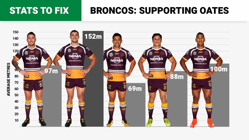To highlight how much Brisbane relied on Oates for backline impetus, Isaako's 100 metres per game was a distant last in the NRL for a 'second best' backline metre-eater.