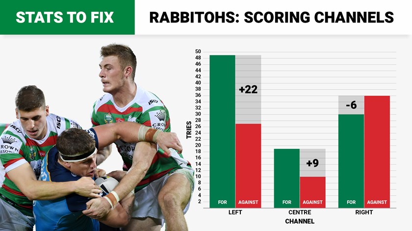 South Sydney totalled 49 tries via the likes of Robert Jennings, Greg Inglis, Cody Walker and John Sutton down the left channel, but their right side wasn't as destructive.
