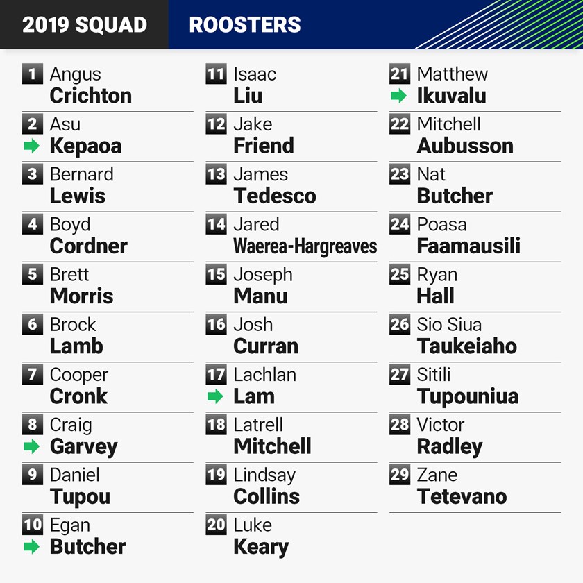 Up front, Dylan Napa's fire and brimstone will be missed but negated by the rise of Siosiua Taukeiaho and Isaac Liu as top-notch enforcers, while Angus Crichton's signing simply balances the class and skill of Boyd Cordner's left edge now on the Roosters' right.