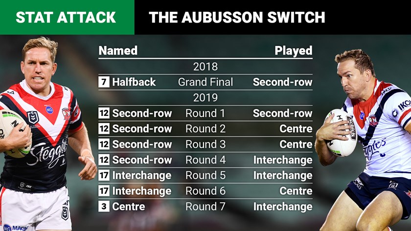 Aubusson, who was named in the No.7 jersey for Cronk in last year's grand final, started in the second row against the Dragons - the fifth time this season he has moved from the position he was selected.