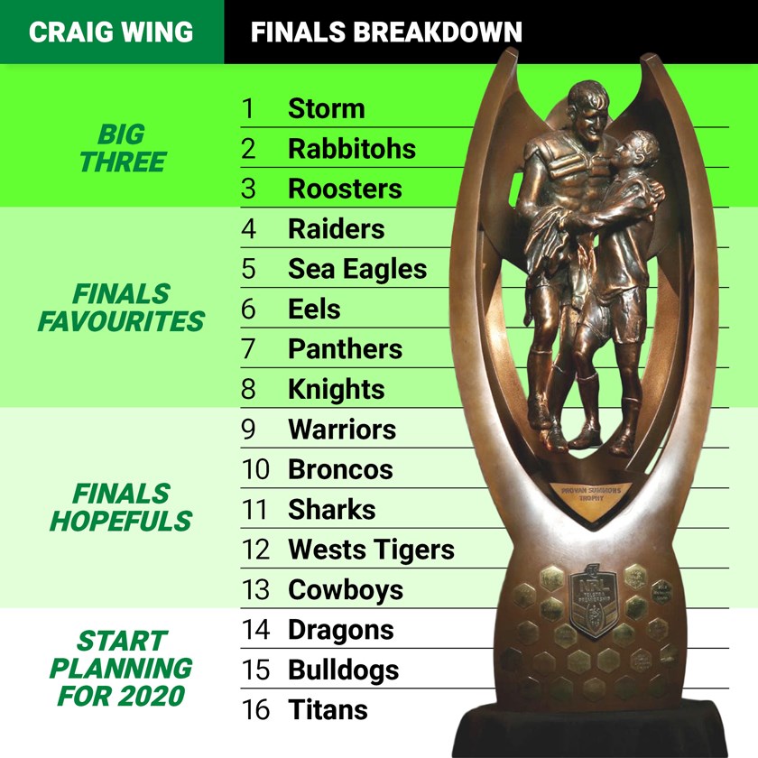 There are three teams in the top category and it would be a big surprise if the eventual grand final winner didn't come from the Storm, Roosters or Rabbitohs.