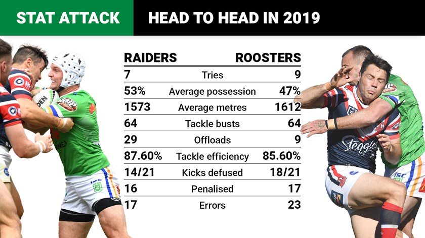 Canberra had the better of most of the stats in their tight previous meeting in round 21, though the Roosters still edged the 22-18 result. Back in round nine the Roosters won the stats and the score, 30-24.