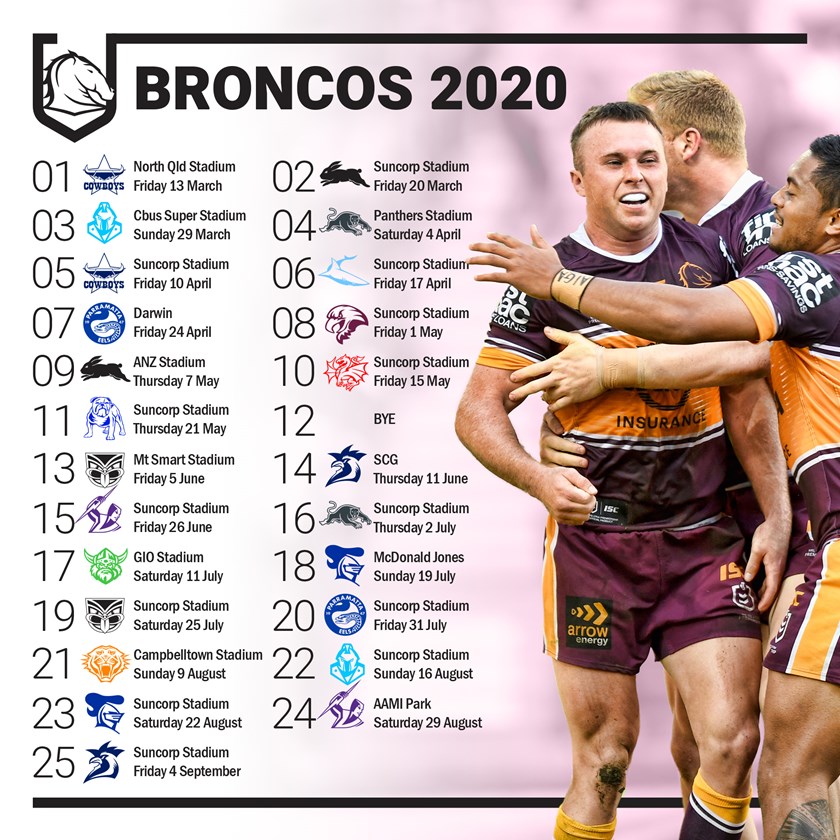 Here is all you need to know about the Brisbane Broncos' 2020 Telstra Premiership draw.