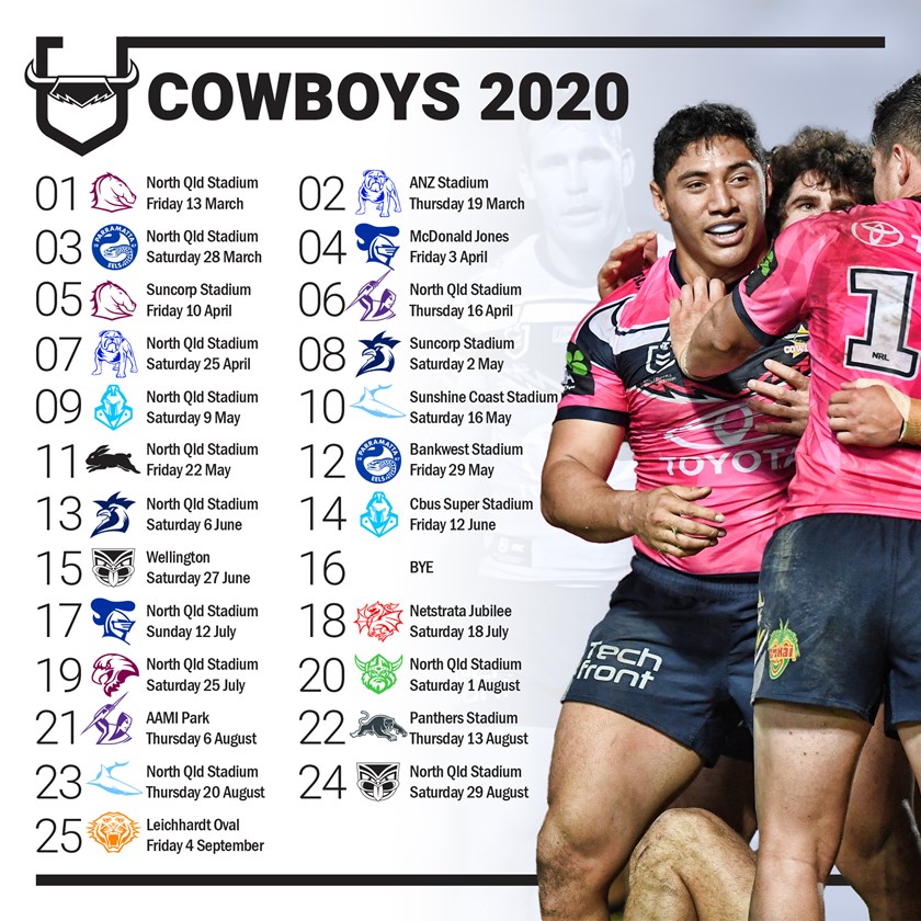 Here is all you need to know about the North Queensland Cowboys' 2020 Telstra Premiership draw.
