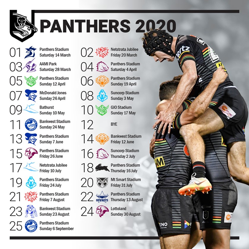 The Panthers get to play all three of 2019's best sides in the opening five rounds, starting the season against the premiers, with games against the Storm and Raiders plus the Broncos inside the first five weeks. On the upside, four of their first six games are at home.