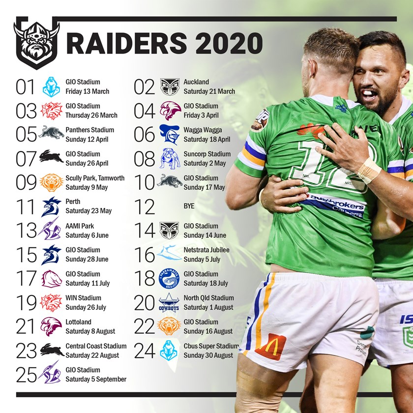 Still no prime time free-to-air love for the Green Machine despite their grand final run. A round 3 Thursday night clash with the Dragons and then Manly the following Friday are their only games in the slots Canberra have coveted for the last two decades.