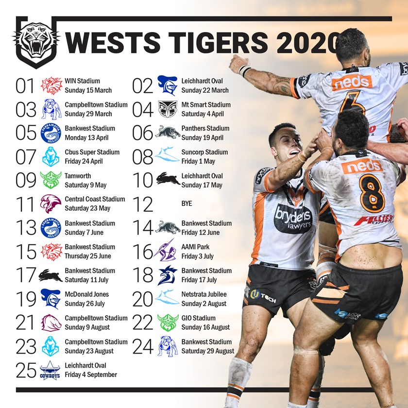 Here is all you need to know about the Wests Tigers' 2020 Telstra Premiership draw.