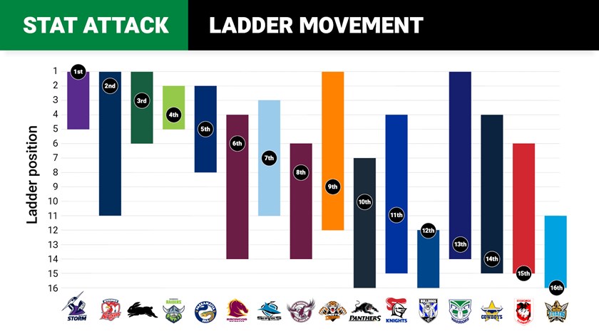 Round one was the only week all year the Storm spent outside the top four while the Raiders joined them in never appearing below fifth.