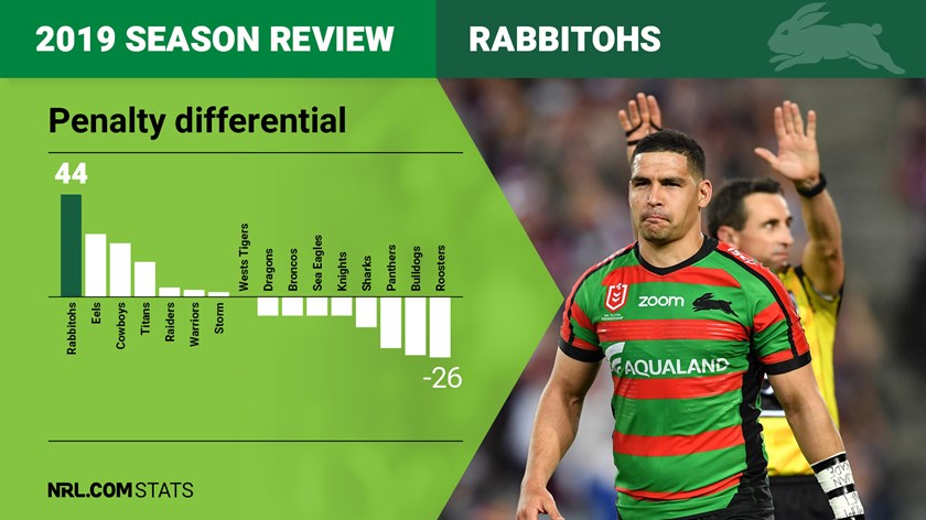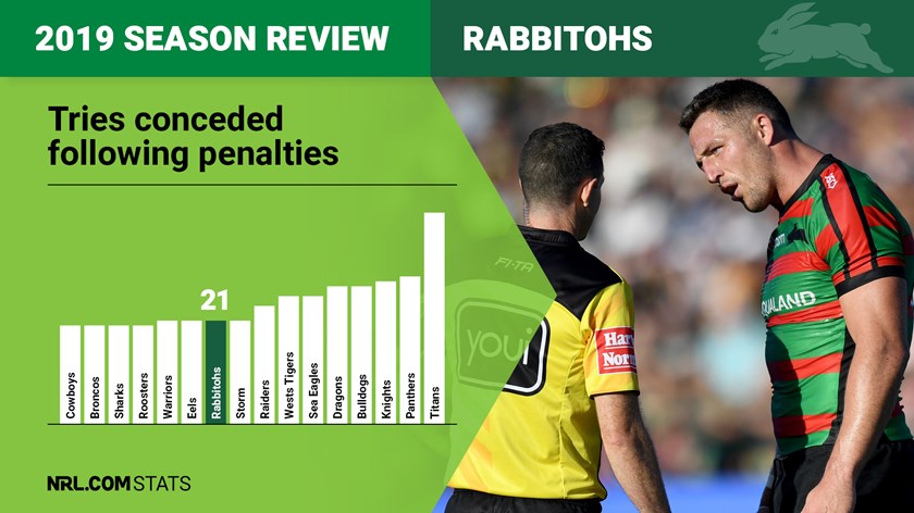 As mentioned above, Souths were one of the best teams when it came to not conceding a try in the set after conceding a penalty, in part because they conceded the fewest penalties in 2019.