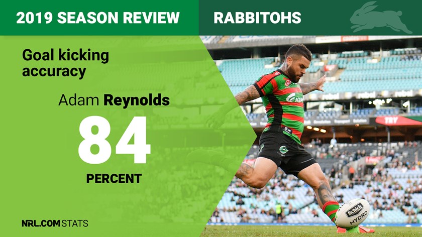 The Bunnies, largely through sharpshooter Adam Reynolds, kicked at 82.6% in 2019 – second best of all teams behind only Penrith (87.5%), with Reynolds going at 84%. Second stringer Dane Gagai netted seven from nine attempts.