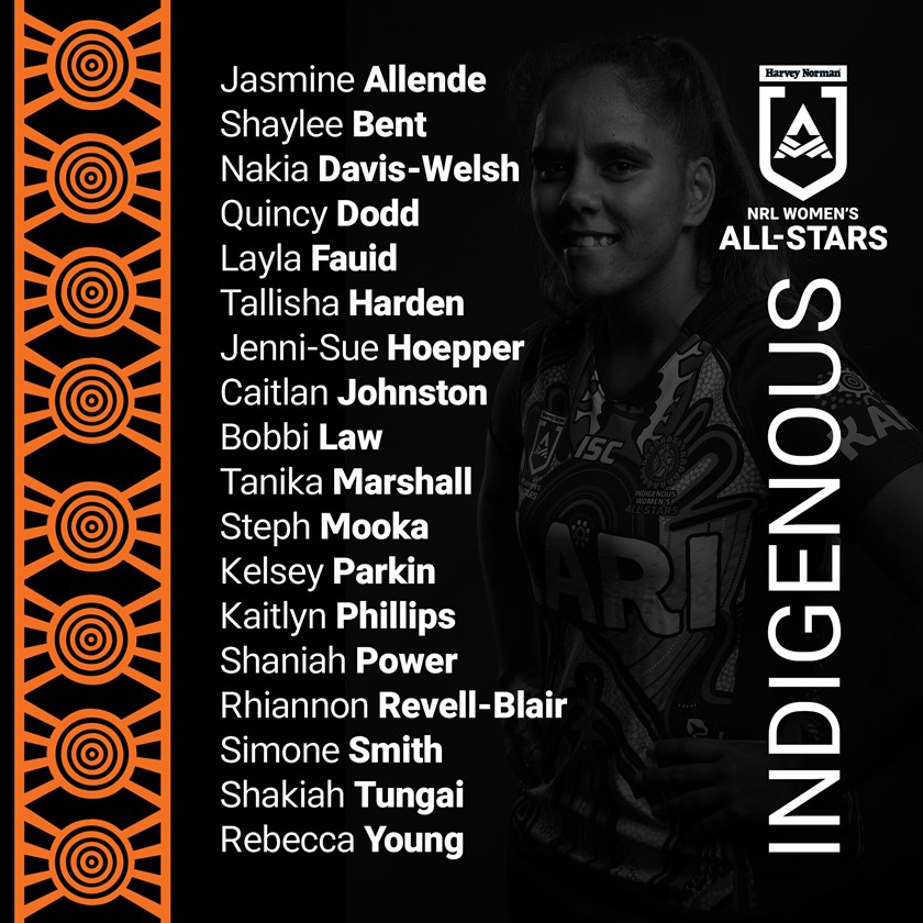 The Indigenous All Stars will be boosted by the inclusions of former Jillaroos representatives Nakia Davis-Welsh, Simone Smith and Jenni-Sue Hoepper.