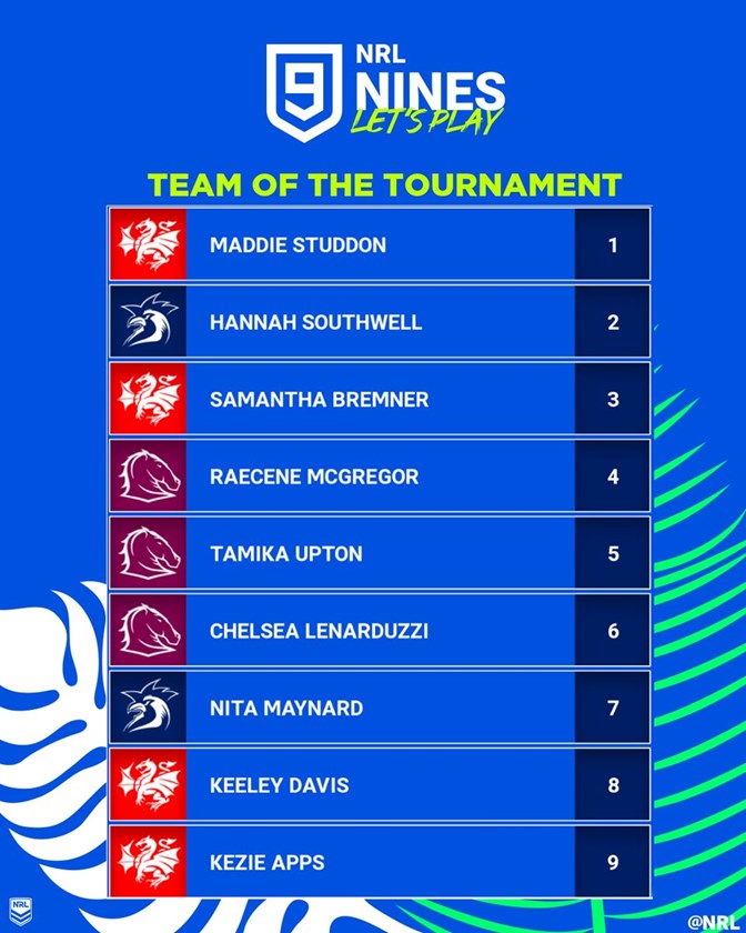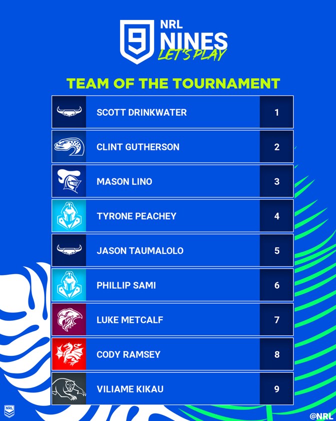 Titans duo Tyrone Peachey and Phil Sami, Eels skipper Clint Gutherson, Newcastle's Mason Lino, Manly comeback kid Luke Metcalf, Dragons rookie Cody Ramsey and Panther foward Viliame Kikau rounded out the men's team of the tournament.