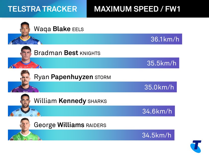 The 25-year-old beat Knights centre Bradman Best (35.5km/h), Melbourne fullback Ryan Papenhuyzen (35km/h), Sharks custodian Will Kennedy (34.6) and Raiders halfback George Williams (34.5).