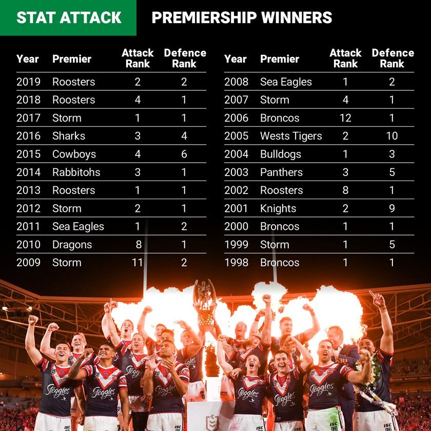 The best attacking team has won the Provan-Summons Trophy eight times since the NRL began in 1998 but on four of those occasions they were also ranked No.1 in defence.