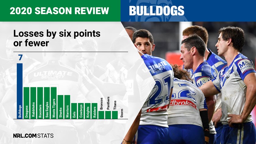 There is possibly no statistic that better encapsulates Canterbury's season-long trend of mostly being competitive but struggling to get any reward than this one. A whopping seven losses by six points or under, almost double what any other team had to endure.