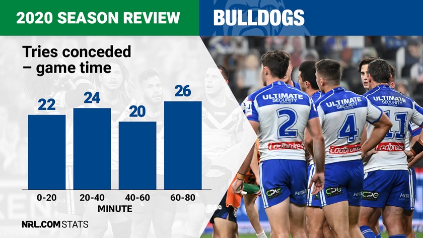 It was the home stretch of matches that was the most costly for the Dogs, who not only scored just 10 tries all year after the 60-minute mark but conceded 26 tries in the same period as a number of winnable games slipped away.