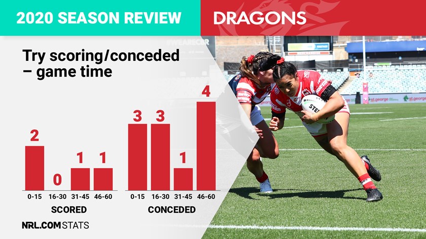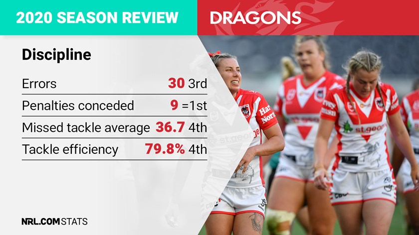 In a further unwanted statistic, five Dragons players finished in the NRLW top 10 for missed tackles.