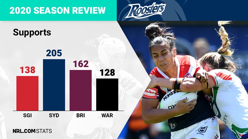 Another area the Roosters excelled in were supports with their 205 figure ahead of the three other clubs in 2020.