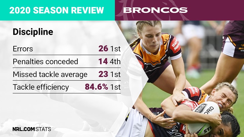 The Broncos may have struggled with their completion rates early but ended up with the least amount of errors across the regular rounds with 26 in total.