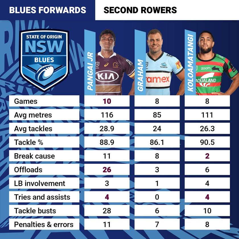 Matterson has been a squad member in the past and is going well for the Eels, though his numbers aren't strong thanks to a long concussion lay-off while former Blues back-rower Wade Graham has given the state stellar service previously but has struggled for form this year in a team doing it very tough.