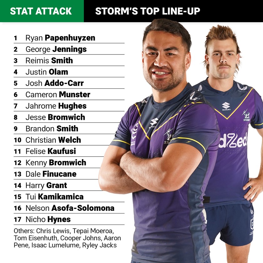 "[Ryan] Papenhuyzen will be fullback. Brandon Smith will go to hooker. [Tui] Kamikamica will be on the bench and Harry Grant will go back to the bench.