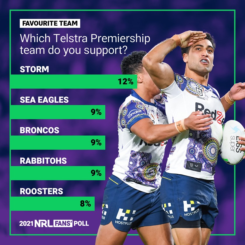 It seems a fair few people have jumped on the Storm bandwagon (12%) after their premiership success in 2020.