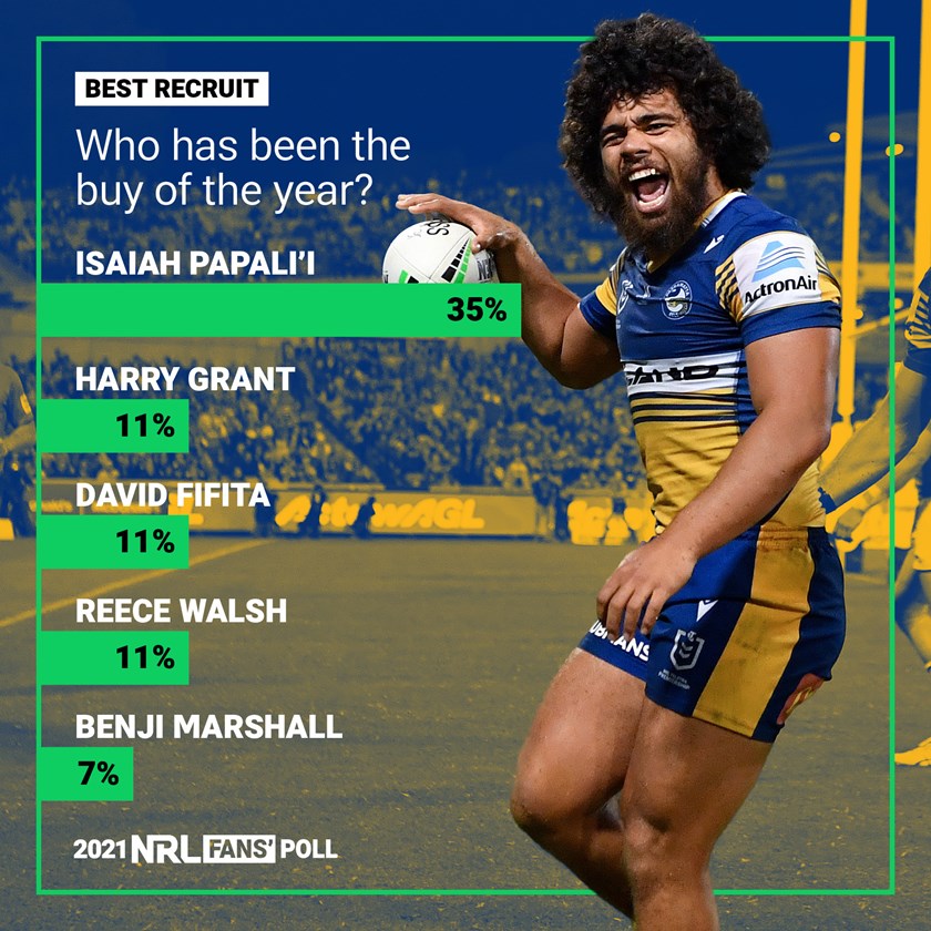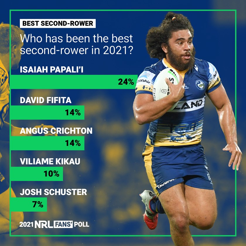Papali'i didn't feature in last season's poll, which was taken out by Panthers powerhouse Viliame Kikau with 36% of the vote.