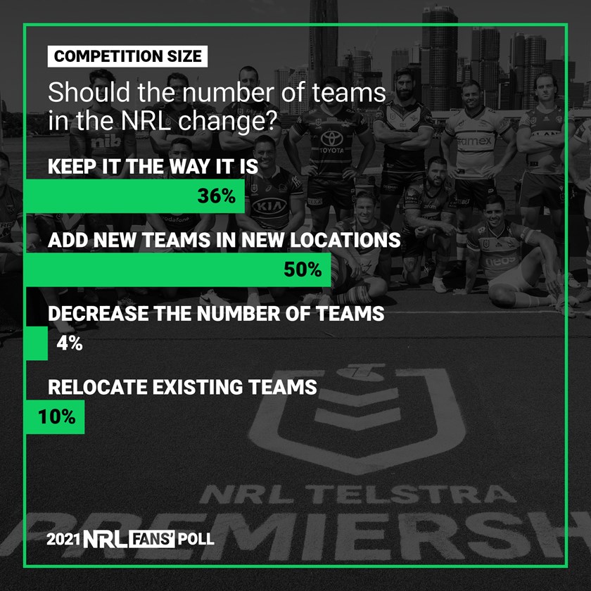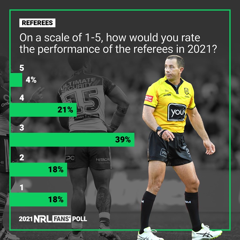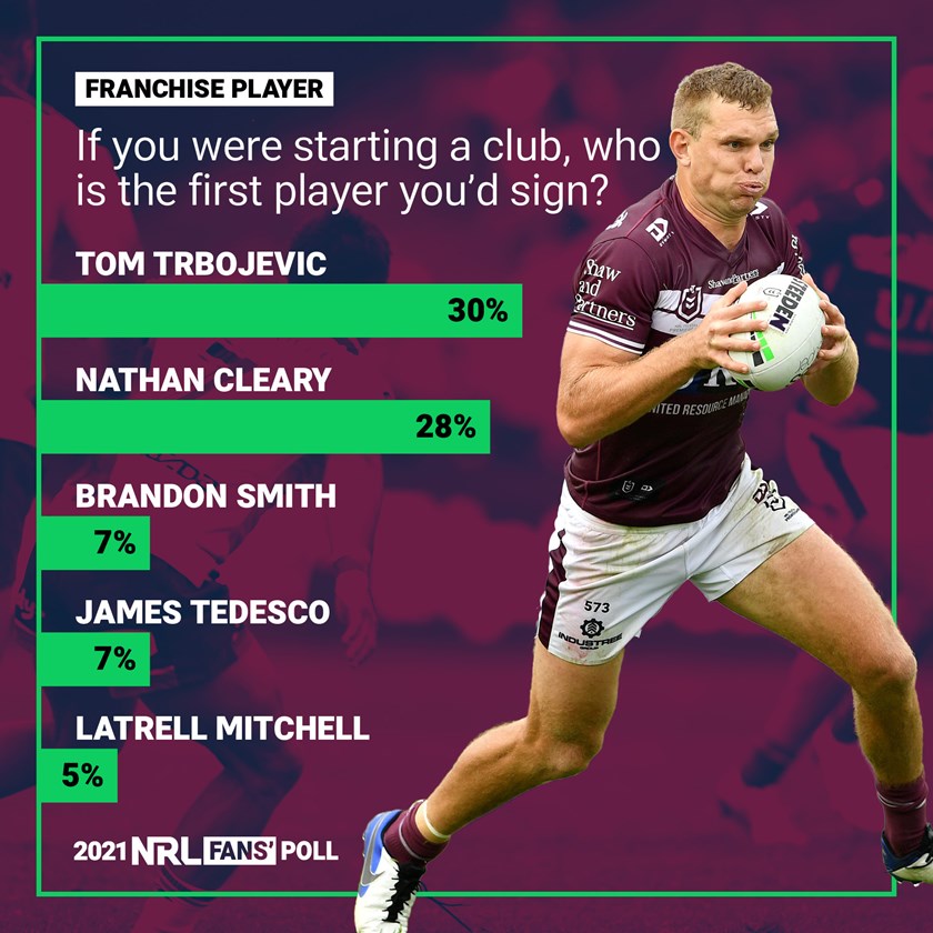 Fans were quizzed on a range of other topics like the performance of referees and the NRL administration and who they'd sign if they were starting a franchise.