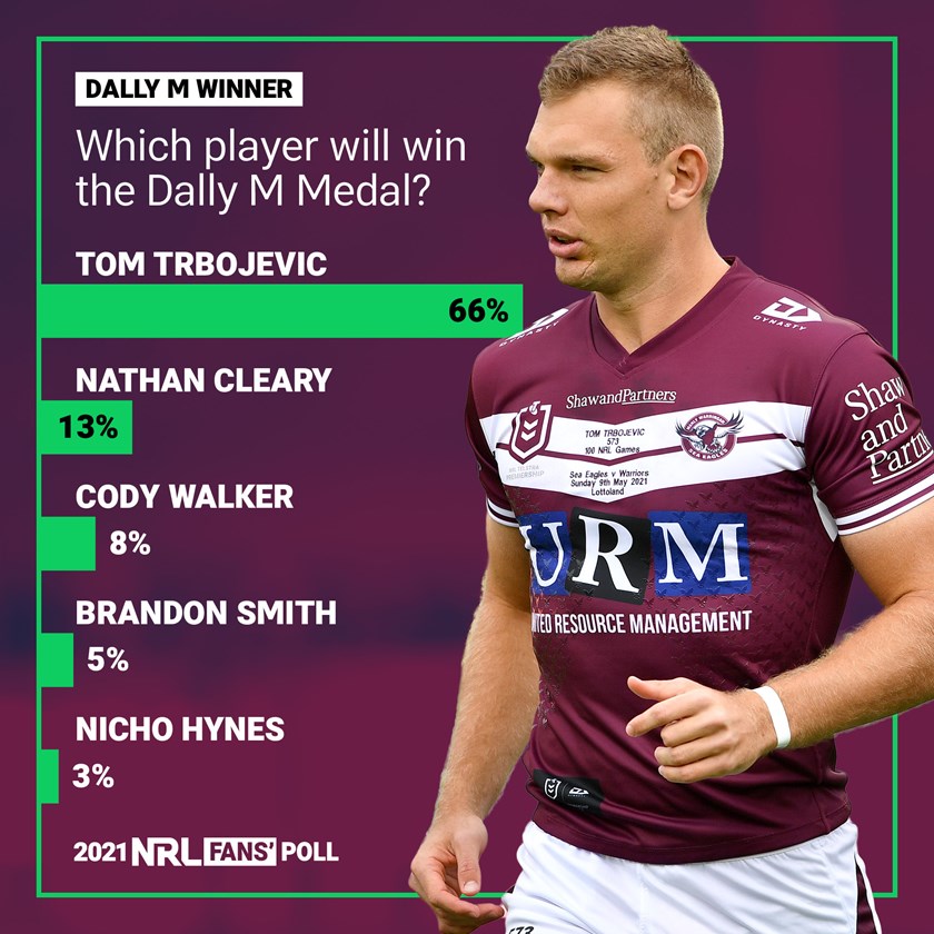 He may have only played 13 NRL games this season, but voters are convinced Tom Trbojevic has still done enough to collect the game's most prestigious individual prize.