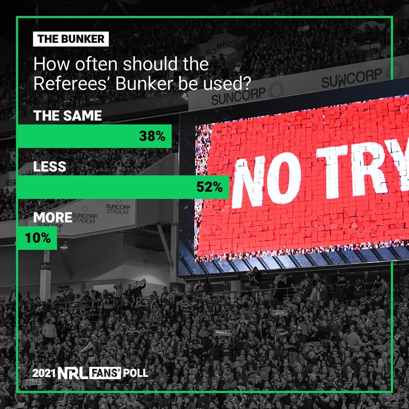 Last year 42% said they only wanted the Bunker to rule on forward passes in a try-scoring situation while 35% said yes in general.
