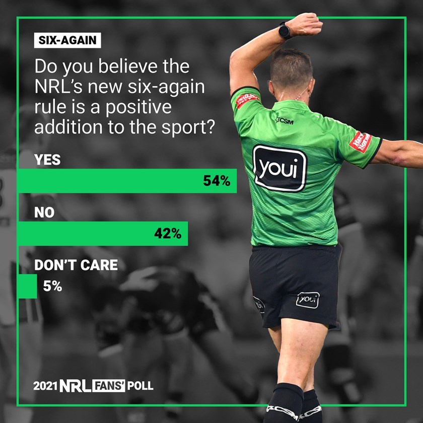 It's been the subject of much debate, but according to the poll, more than half of fans are still in favour of the six-again rule.