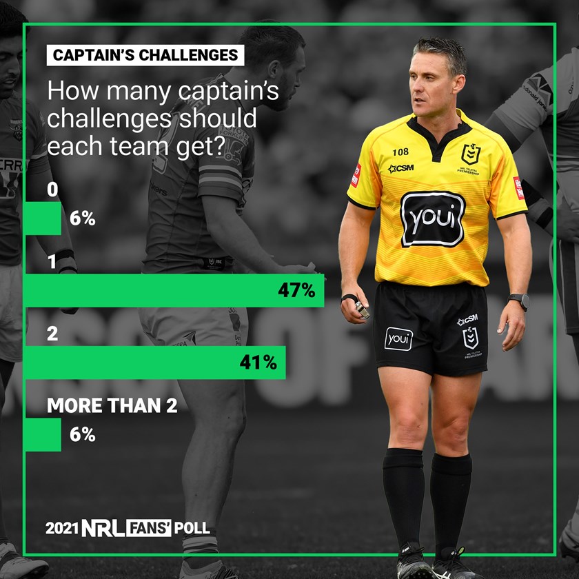 The results were much the same last year with 49% of fans agreeing that one captain's challenge was the optimum number.