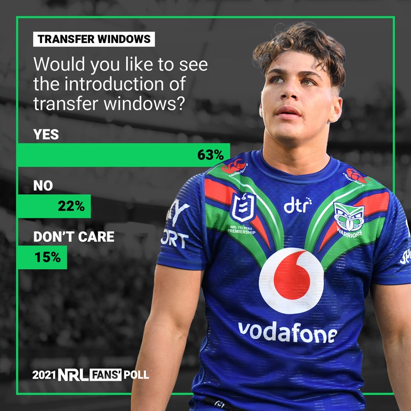 The NRL has dipped its toe in the water with unofficial loan arrangements in recent times and the majority of respondents are keen for a proper transfer window to be introduced.
