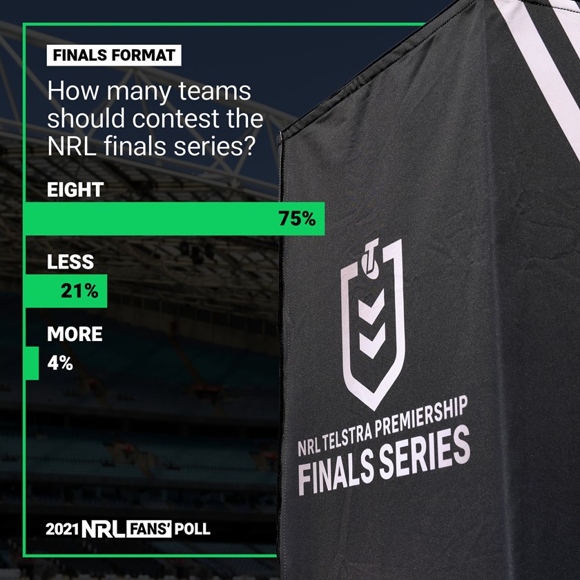 However, there's been a slight decrease in that way of thinking with 84% of respondents voting in favour of the eight-team system last year. In both cases, only 4% said more teams should make the finals.