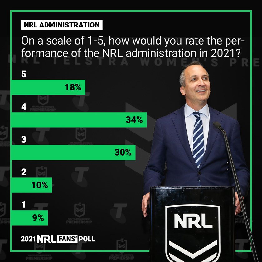 On a scale of 1-5, how would you rate the performance of the NRL administration in 2021?