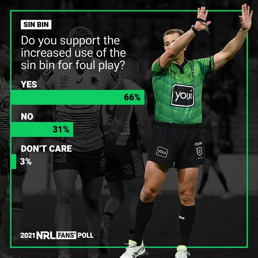 The crackdown on high contact and the subsequent increase in the use of the sin bin drew some outcry, but the vast majority of voters are happy for foul play to be punished with a 10-minute sit-down.