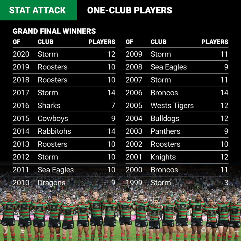 Besides the 2016 Cronulla Sharks and the 1999 Melbourne Storm, whose roster had been mostly drafted from the defunct Perth Reds and Hunter Mariners, every team to taste grand final glory in the NRL era has been dominated by players whose careers began at the club.