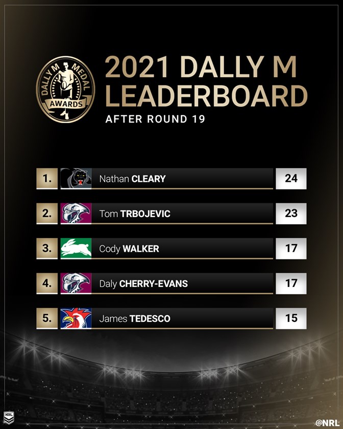 Along with Cleary, Trbojevic and Tedesco, Cody Walker and Daly Cherry-Evans were in the top five after round 19.