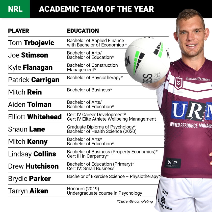 • Tom Trbojevic (Manly Sea Eagles): Completing a Bachelor of Applied Finance with Bachelor of Economics. (Macquarie University)