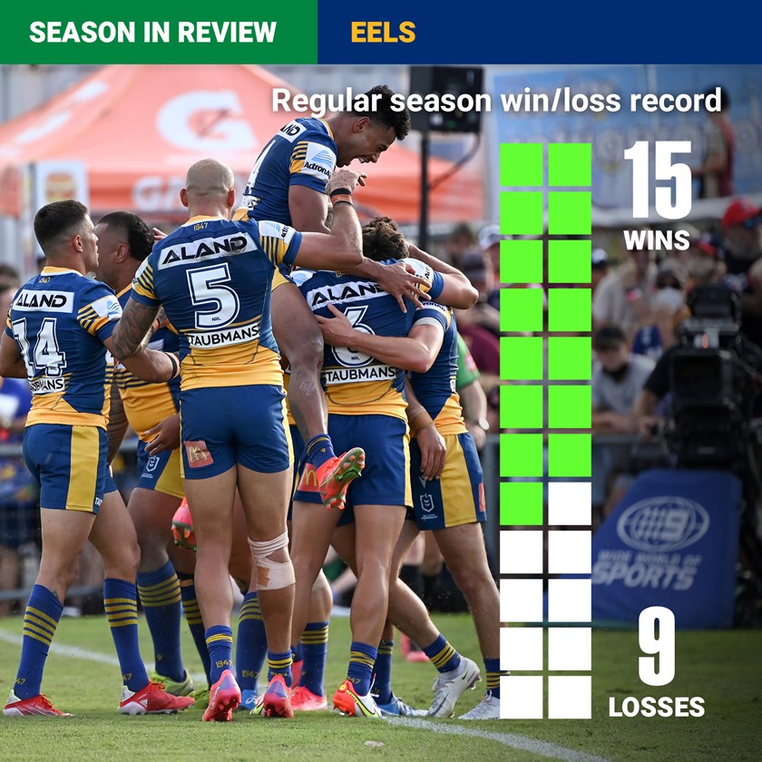 The Eels were one of just three clubs to sit inside the top eight for the entire season (along with the Roosters and Panthers), and they were comfortably inside the top four when the competition relocated to Queensland from round 18.