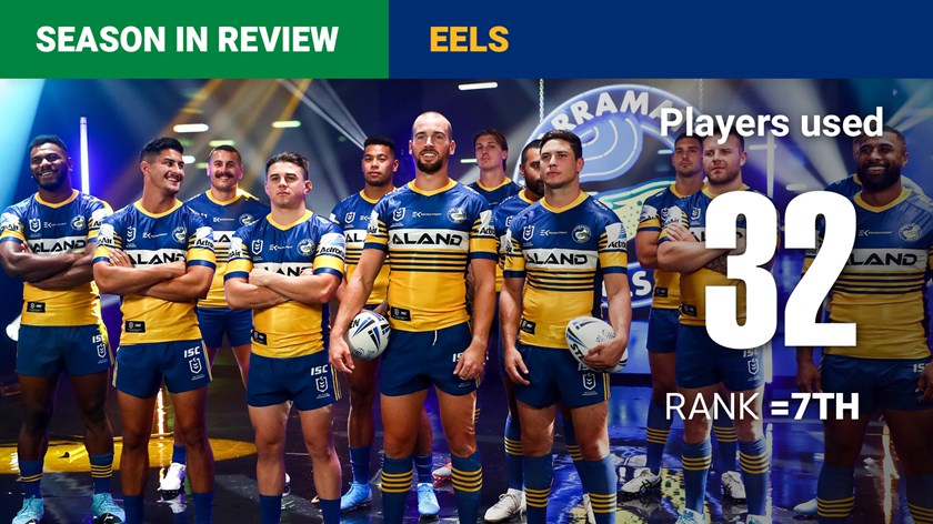 A pretty typical squad size across the season for an NRL club this year, with all but three clubs using at least 30 players and no team using more than 36. The seven debutants given a chance by Parramatta this season ranked them second behind only the injury-ravaged Roosters (nine) in that category, and they used nine players under the age of 23.
