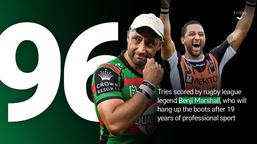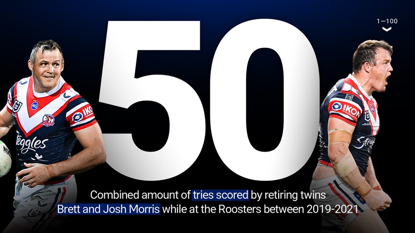 The number of retirees in 2021, including a quartet of greats from the Roosters - Boyd Cordner, Jake Friend, Brett Morris and Josh Morris - and the evergreen Benji Marshall, whose 346th and final appearance came in the decider with Souths.
