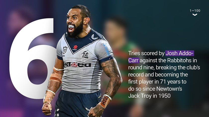 Line breaks between them for Josh Addo-Carr (28), Jahrome Hughes (20), Nicho Hynes (15) and Brandon Smith (12), highlighting the potency of the Melbourne Storm attack, which piled on 815 points in 24 matches.