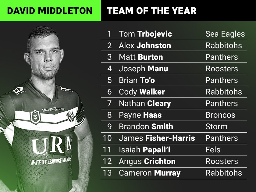 The Panthers’ middle man was one of four players from the premiers to make the line-up, joining centre , winger and halfback , but they could easily have been joined by lock Isaah Yeo.