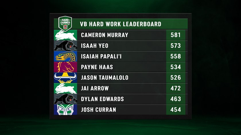 Murray, who made an incredible 61 tackles along with 11 runs in the game, finished with a 90-point score to sit fourth among all players in Round 7 — enough to put him eight points clear on top of the leaderboard from Panthers lock Isaah Yeo.