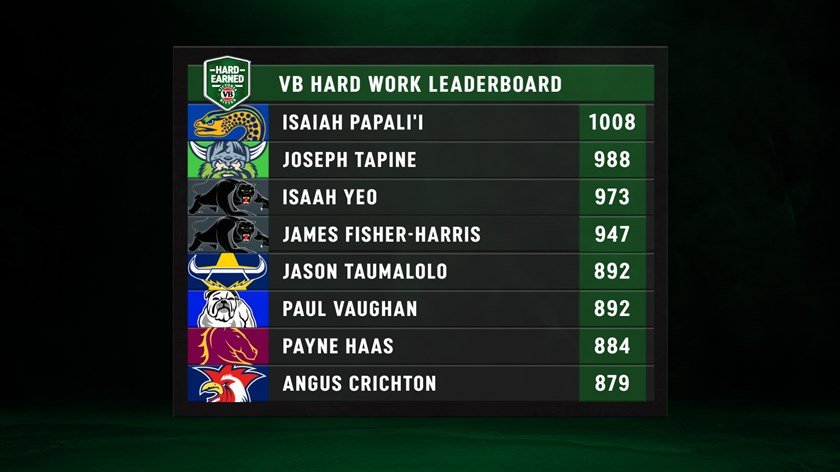 Tapine's stellar run of form — combined with Isaah Yeo sitting out last week's game — has seen the Kiwi international climb to second on the overall leaderboard behind Eels forward Isaiah Papali'i. Papali'i is the first player to top the thousand-point mark this year, having not missed a game for the blue and gold in 2022.